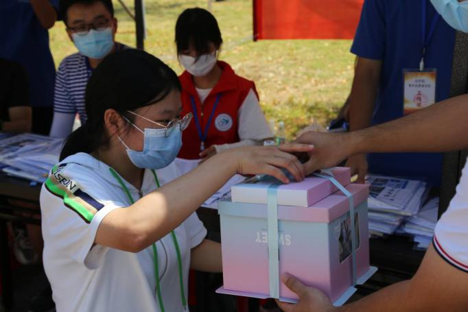 2022年9月4日既是学院新生谭萍同学的开学日也是她的生日。当日,所有在迎新点的志愿者一同为小寿星谭萍合唱生日歌,并由法学院辅导员雷礼送上学院准备的一份蛋糕,向谭萍同学表达热烈欢迎与祝福。“这一定是我经历过的最特别的生日了”谭萍同学说道,“非常感谢学院老师和学长学姐的祝福,我现在是又激动有惊喜又幸福!”