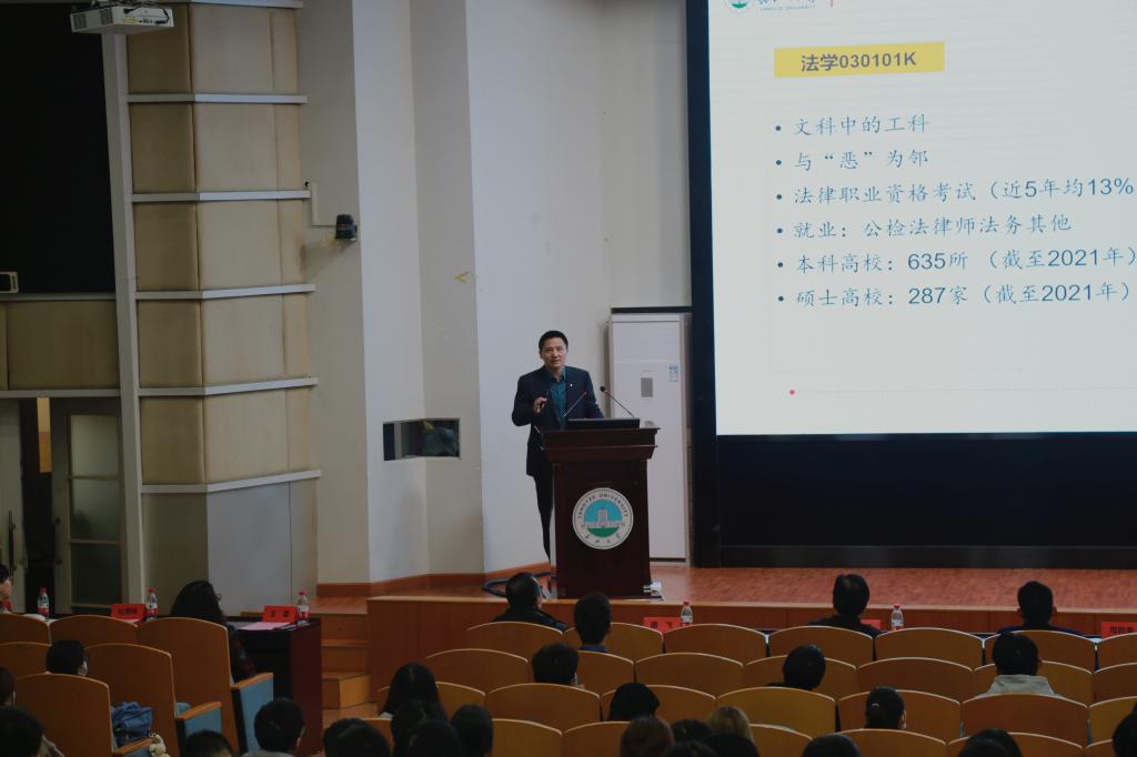 (通讯员 周正宇 马金伶 周文双)4月17日下午3时,法学院于东校区12教405报告厅召开2021级本科生专业分流暨英语四级考试动员会,会议由副院长唐飞主持,党委书记周胜美、院长李华成、副院长彭泽君、副书记胡红霞,各系主任、2021级班主任、学工办老师及2021级全体学生参加。