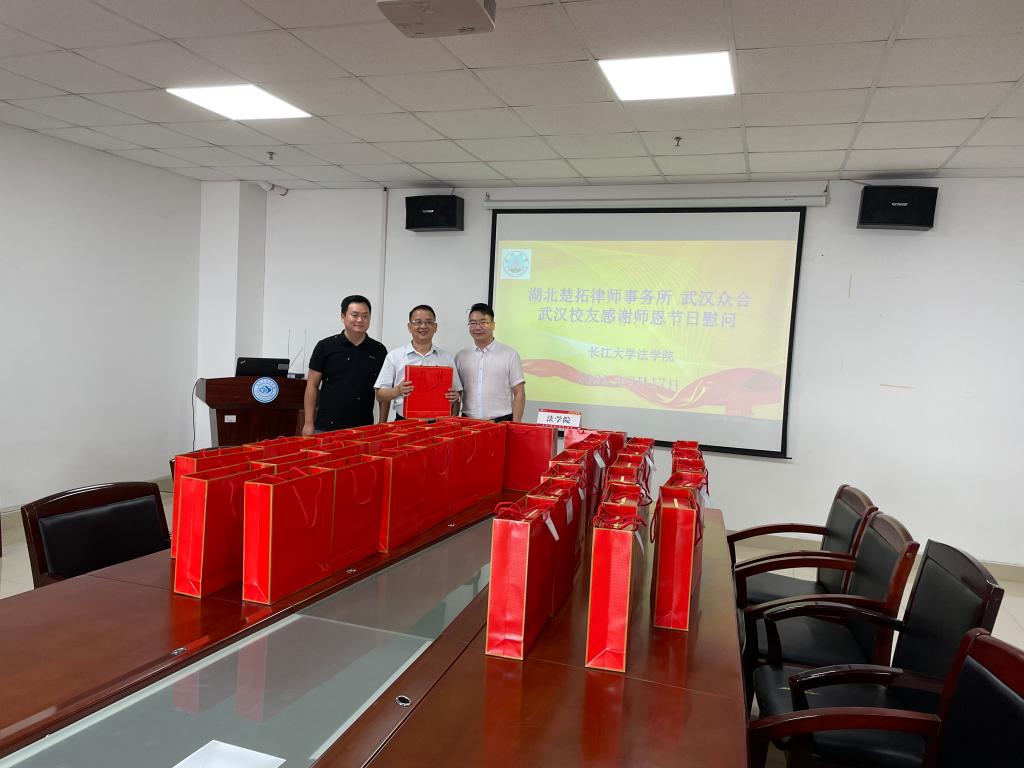 9月17日,为庆祝教师节和中秋节,湖北楚拓律师事务所、武汉众合的部分校友回校感谢师恩,为法学院教师送上节日祝福。