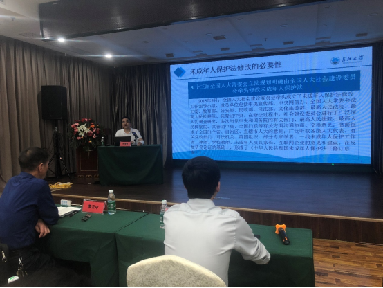 为提升全市儿童督导员工作能力和服务水平,推进儿童福利工作高质量发展。5月24日市民政局、市未成年人保护中心举办全市儿童福利工作暨儿童督导员培训班。法学院杨春磊博士应邀就即将在“六一国际儿童节”正式实施的新《未成年人保护法》做专题讲座。