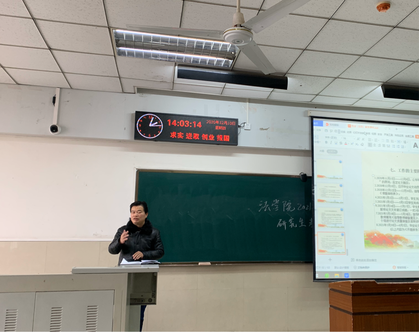 (通讯员:王怡然)12月10日下午14时,法学院于12教102教室召开2021届毕业论文指导动员大会暨研究生考试诚信教育大会。本次大会由法学院众领导及辅导老师到场参与,2017级学生如数参加。