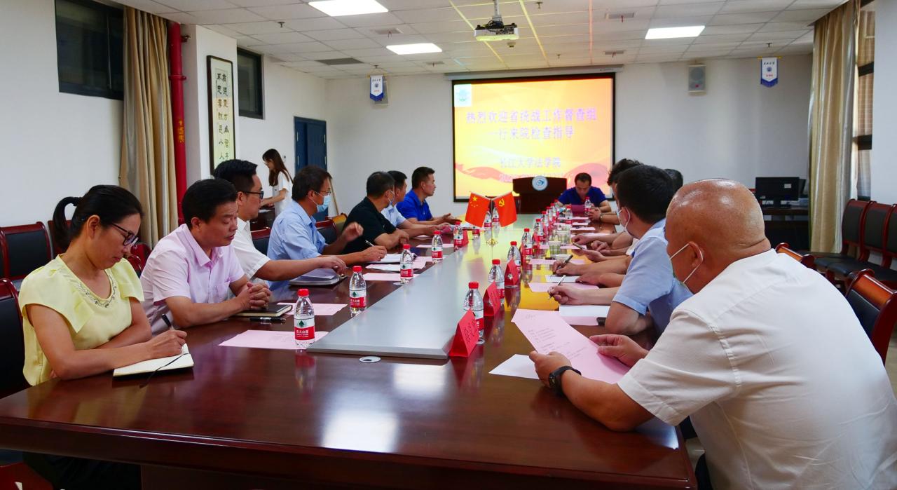 9月3日下午,湖北省委台办副主任邢军志,省委统战部联络处副处长孙莉,荆州市委常委、市政府党组成员李水彬,市委统战部常务副部长赵永琴等一行,在副校长周从标、统战部常务副部长谌姿的陪同下,到法学院调研。