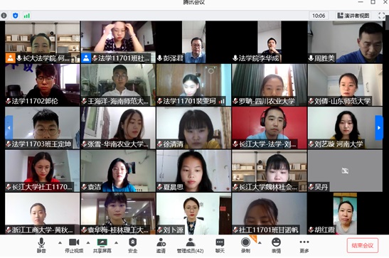 (通讯员 魏林)7月9日上午,法学院2021级研究生招生夏令营开营仪式以线上会议的形式举行。长江大学研究生院副院长毛德波、法学院党委书记周胜美、副院长李华成、彭泽君、党委副书记胡红霞及唐飞、何章银、徐莹、胡承武、杜云素、钟燕慧、魏波等教师和来自全国各地的40余名营员参加开营仪式。开营仪式由法学院硕士教育中心主任何章银副教授主持。