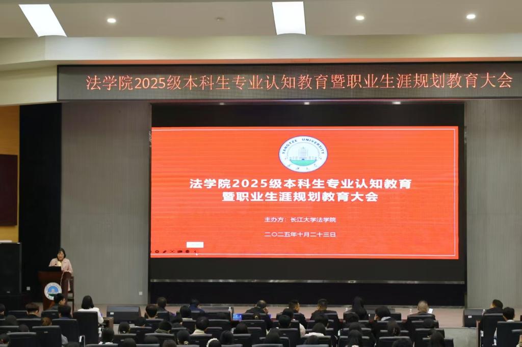 (通讯员 梅雅琪/文 孔梦洁 杨欣瑶/摄)为助力 2025 级新生快速完成角色转变、融入大学集体,精准把握法学专业定位、明晰未来职业发展方向,10 月 23 日晚,长江大学法学院于农科大楼 1058 学术报告厅成功举办 2025 级本科生专业认知教育暨职业生涯规划教育大会。大会由法学院党委副书记严星主持,法学院院长李华成、副院长唐飞、杨春磊,教师代表杜厚扬、湖北楚韵律师事务所执行主任兼创始合伙人彭德江及全体辅导员、2025级新生齐聚现场,共同参与此次盛会。