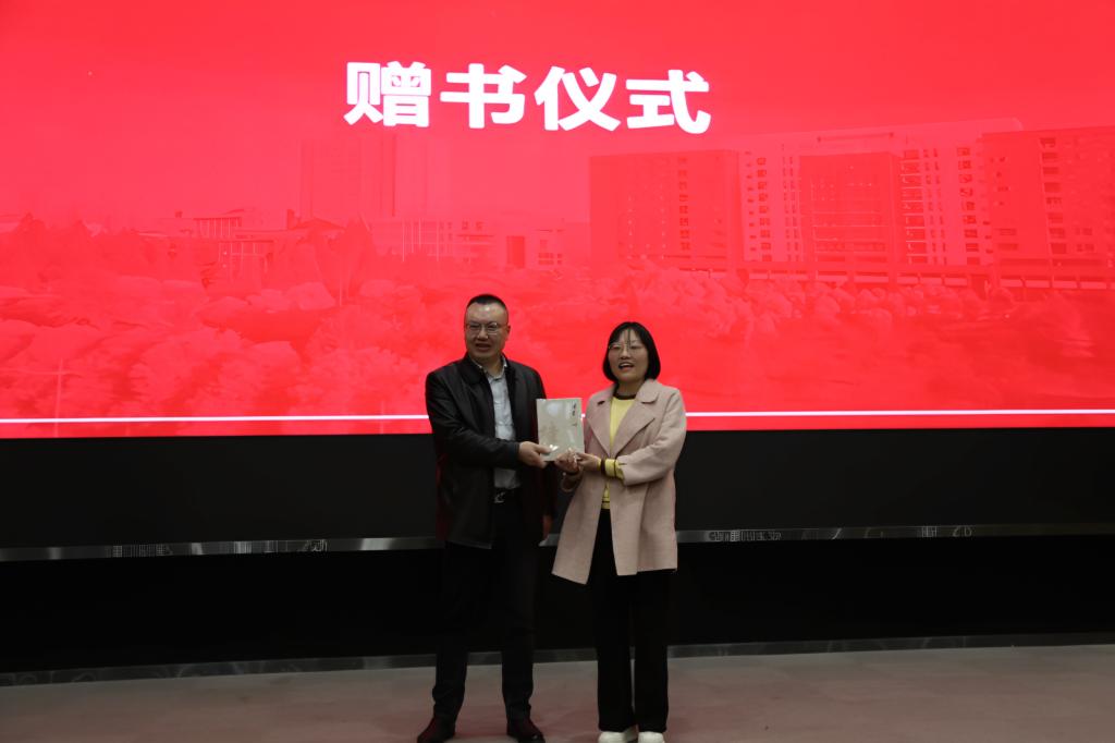 致辞结束后,赠书仪式随即有序开启。湖北楚韵律师事务所执行主任彭德江为每一位新生精心准备了一本法学书籍,书页间凝结着对青年法律人的期许;随后,学院党委副书记严星代表学院登台接书,以庄重姿态接过这份承载着法律职业传承意义的珍贵赠礼,为这场充满仪式感的环节增添了厚重的人文温度。