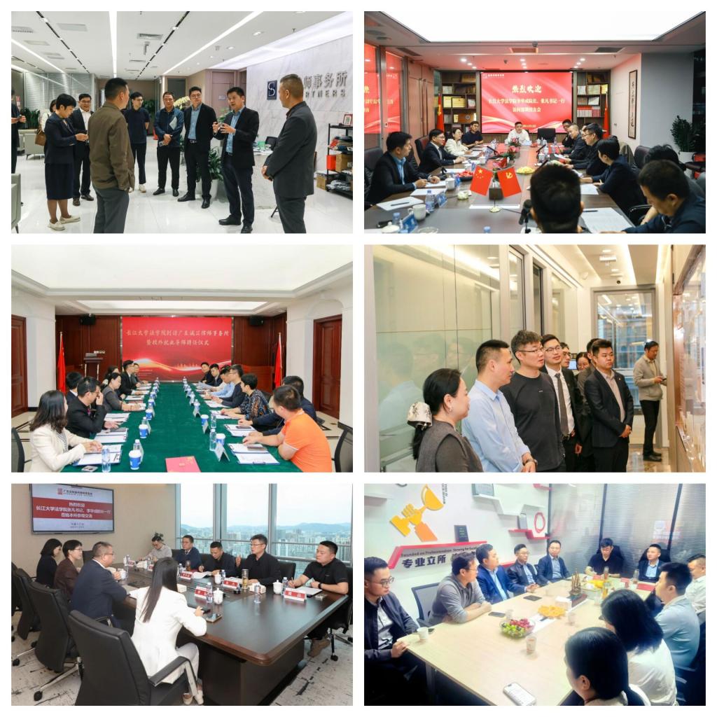 (通讯员 程兴)11月12日至14日,长江大学法学院院长李华成、党委书记张凡一行先后走访广东诺臣律师事务所、上海融孚(广州)律师事务所、广东法制盛邦律师事务所、广东威法律师事务所、广东艾文律师事务所、广东明洺德律师事务所、晟典律师事务所、广和律师事务所、卓建律师事务所、北京市道可特(深圳)律师事务所、广东金圳律师事务所、广东诚公律师事务所及部分广东校友律所,深入开展访企拓岗系列活动,并举行校外就业导师聘任仪式,全面开启校所协同育人新篇章。广东晟典律师事务所高级合伙人、长江大学深圳校友会会长兼法律分会会长叶秀进,上海融孚(武汉)律师事务所主任、长江大学武汉校友会法学分会会长程兴等校友陪同走访。
