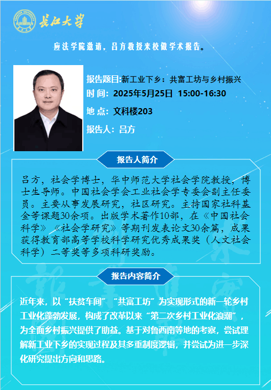 上一条:长江大学法学院学术讲座2025年第三讲:中国涉外民事专属管辖权的制度完善