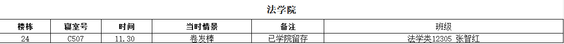 为严肃校纪校规,经学院研究决定,给予以上1间寝室全院通报批评一次。希望全体学生引以为鉴,严格遵守学校的各项管理规定。