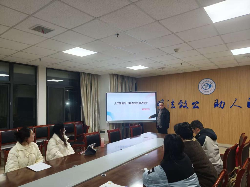 (通讯员:刘依强)2025年11月10日19:00,我院文科大楼203会议室座无虚席,一场紧扣时代脉搏的“求实导师学术沙龙”在此热烈举行。本次沙龙以“人工智能时代著作权的刑法保护”为主题,由我院硕士生导师胡承武副教授主讲,吸引了青年教师及硕士研究生近15人参与,现场学术氛围浓厚,互动交流深入。