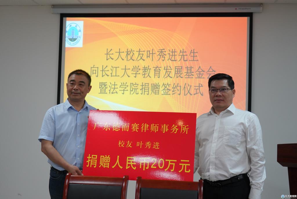 据介绍,叶秀进十分关注法学院的发展和法学专业学生的成长成才,一直积极参与校友总会和教育发展基金会的工作。此次再向母校捐款20万元,主要用于奖励法学院优秀贫困学生和优秀教师,支持法学院的教学科研工作,为母校吸引更多优质生源,培养更多优秀学生助力。